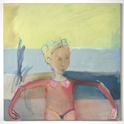 Heike Lydia Grüß (1961 ) La femme á l'air étonné (2024) Öl auf Leinwand Abmessungen in cm: 40.0/40.0/3.8 (H/B/T) Preis: 1.400,00 €