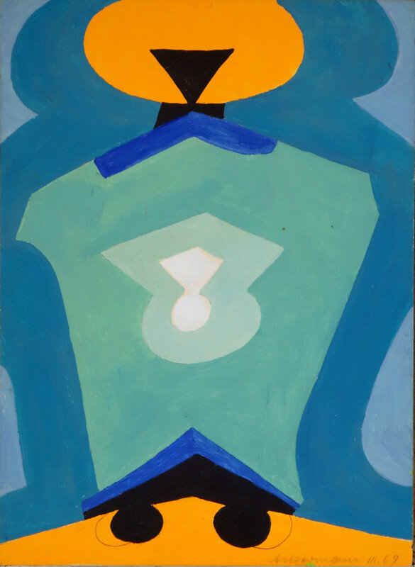 Max Ackermann (1887 - 1975) 2. Sept. 69 - 8.10.69 Rückgriff auf 67 (1969) Acryl auf Karton Abmessungen in cm: 33.5/24.5/0.0 (H/B/T) Preis: auf Anfrage