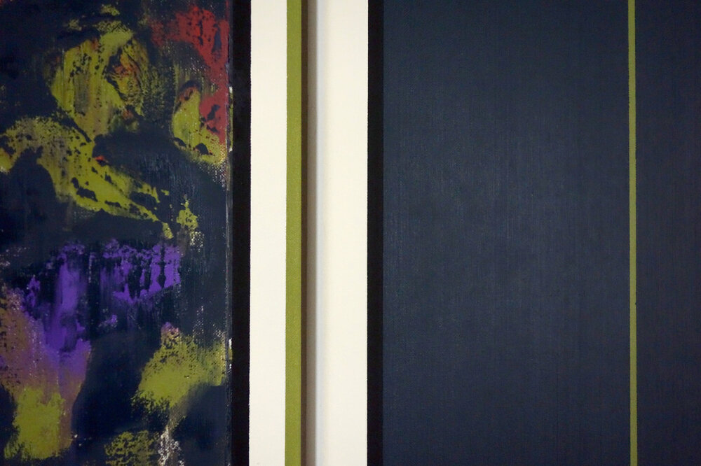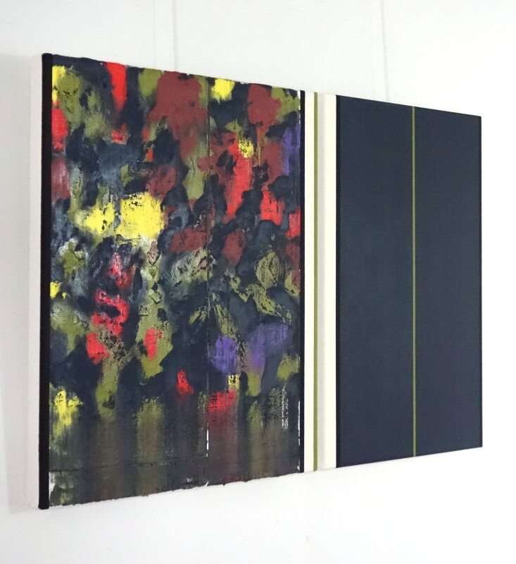 Zweiteilig: Links 60 x 50 cm, rechts 60 x 50 cm. Beide Seiten verso signiert, datiert und betitelt.