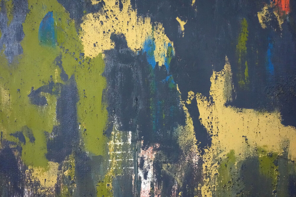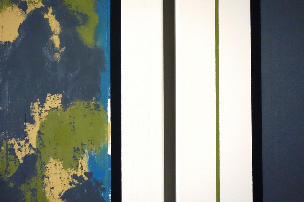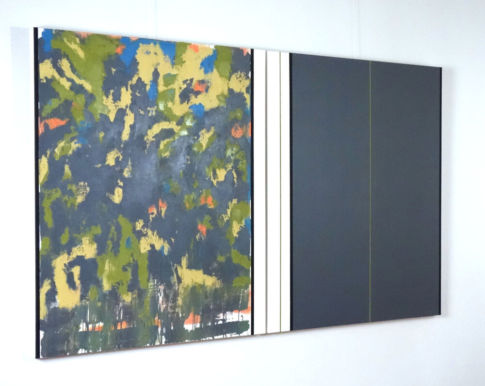 Zweiteilig: Links Zweiteilig: Links 120 x 100 cm, rechts 120 x 100 cm. Beide Seiten verso signiert, datiert und betitelt.