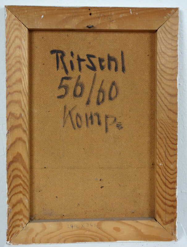 Signiert und datiert unten links. Verso bezeichnet: Ritsch Komp. 56/60. Gerahmt in schlichter originaler Rückleiste. Verzeichnet in: Otto Ritschl, Das Werkverzeichnis 1919-1976, bearb. und hrsg. von Wolff Mirus, München 2017 (Farbabb. S. 231, 1956/60). Provenienz: Privatsammlung Hamburg, Lieselotte Hörnig Wiesbaden.