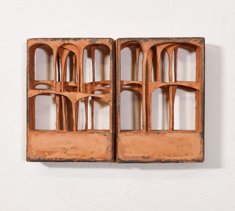Wandrelief mit zwei ausklappbaren Seitenflügeln. Die Maße beziehen sich auf den aufgeklappten Zustand