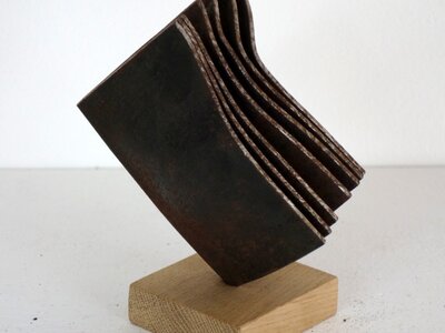 Montiert auf Holzplatte (5,5 x 5,5 cm). Auf der Unterseite des Sockels signiert und datiert. Maße ohne Plinthe 11,2 x 11,5 x 6,0 cm.